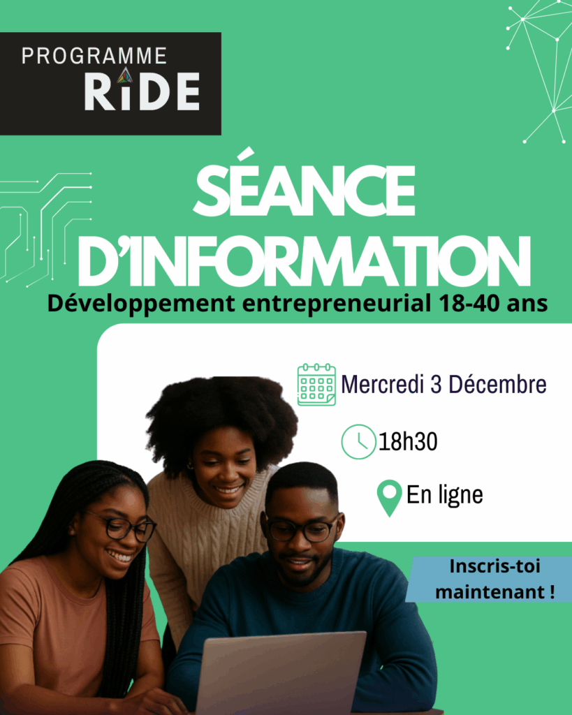 Le Sommet Jeunes Afro invite les 18-40 ans à une séance d’information sur le Programme RIDE, un parcours qui aide à clarifier son idée, structurer son projet et avancer grâce à un accompagnement accessible.
